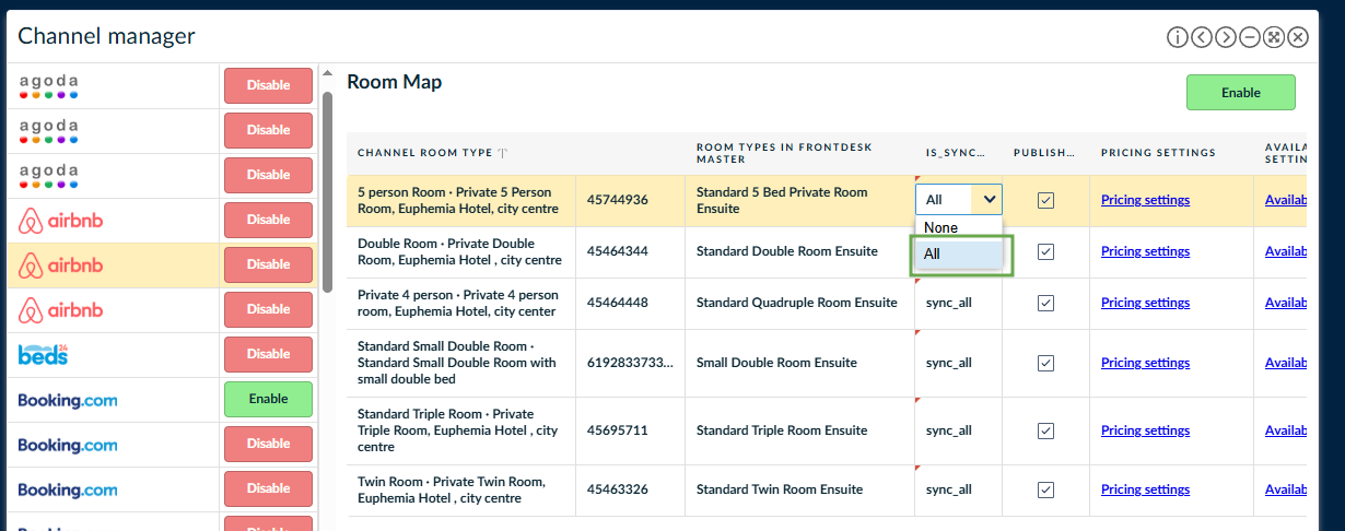 Revisa si todos los precios y la disponibilidad aparecen correctamente en el backoffice de AirBnB. Si notas algún problema, no dudes en comunicarte con nosotros: support@frontdeskmaster.com.