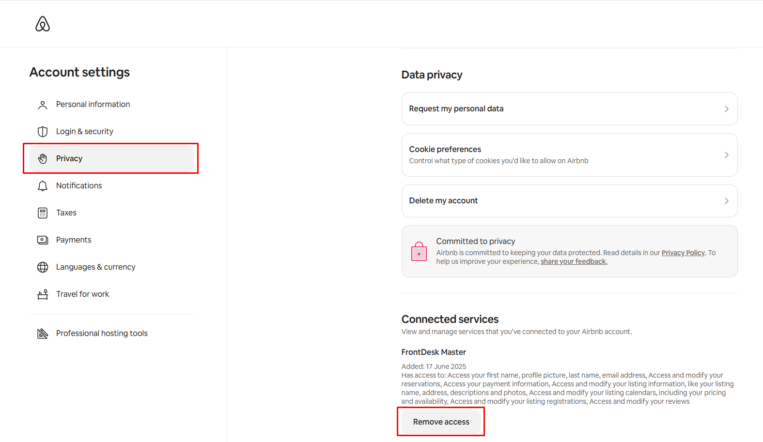 Para desconectar un channel manager de tu cuenta Airbnb, tienes que ir a la sección de CONFIGURACIÓN DE LA CUENTA: